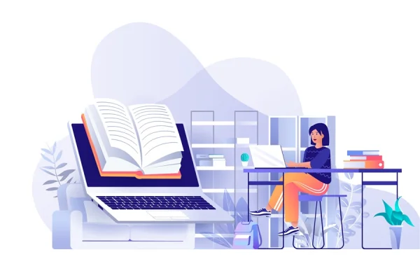 Online reading concept in flat design illustration