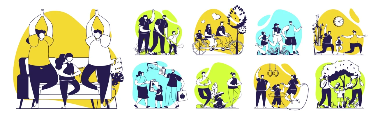 Healthy families concept illustrations