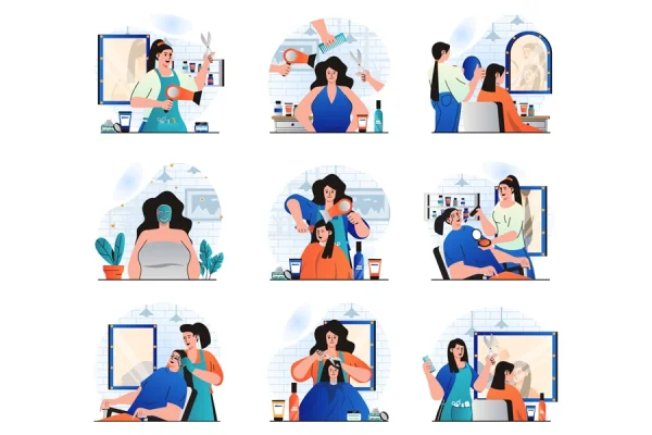 Beauty salon concept with character situations collection