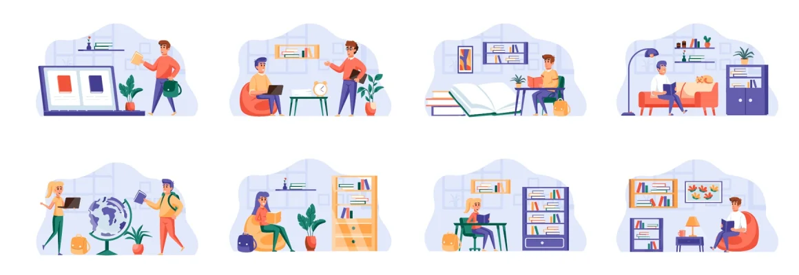Self-study at home illustrations