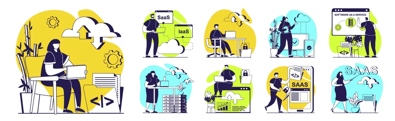 SaaS concept with people scenes set