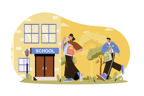 Children go to school web character concept illustration